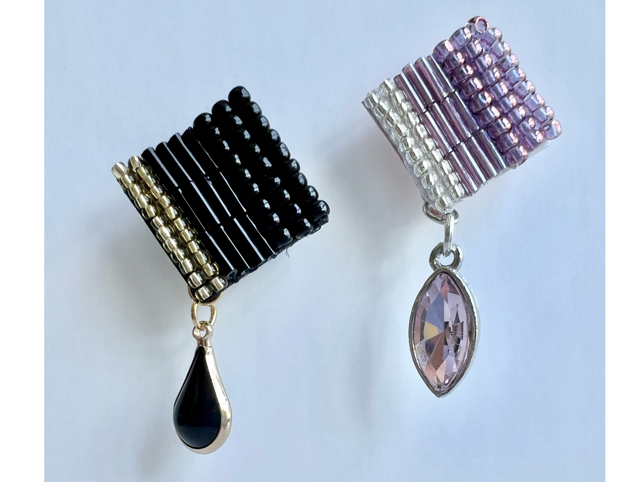 ミトン型の銅板に釉薬とミルフィオリも盛り付けて、北海道の冬を彩る可愛らしいピンブローチを2個作ってチェーンでつなげます。アクセサリー作り