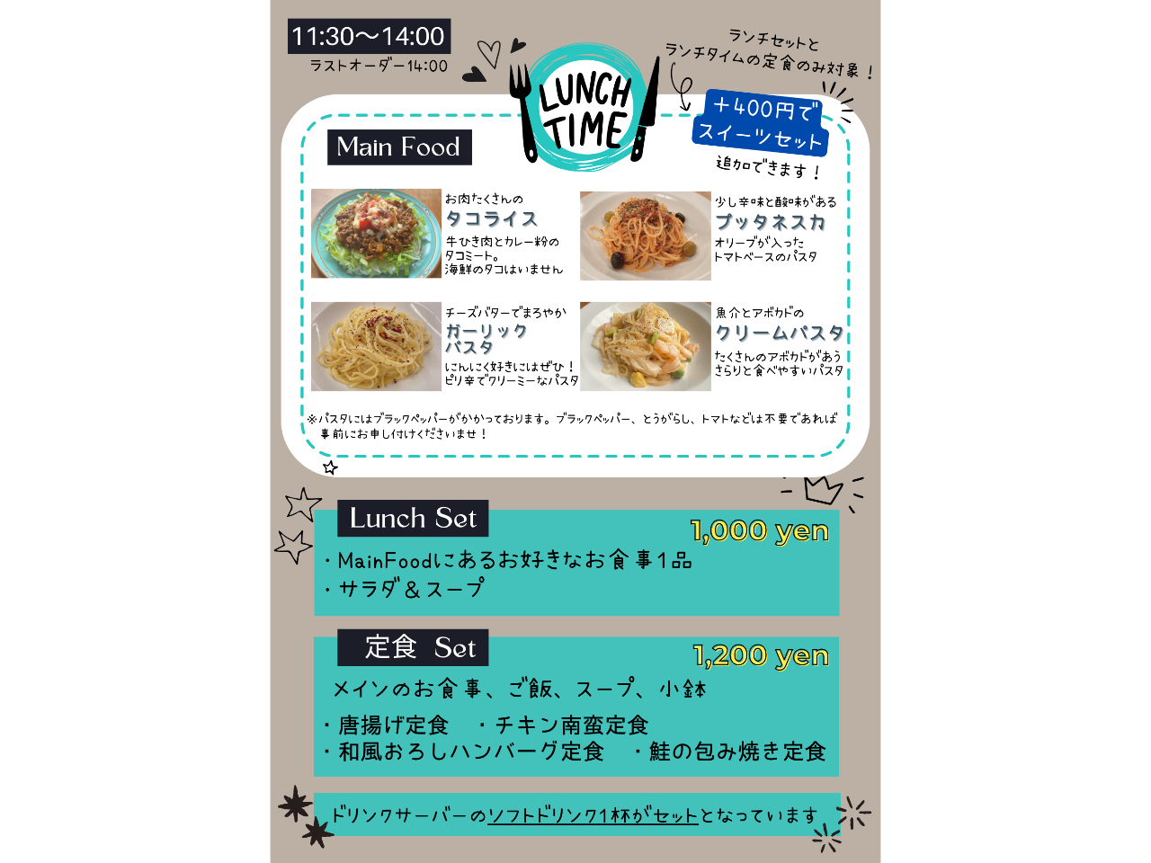 *お食事やおつまみ、ドリンクの種類も豊富!ランチ・ディナー・バーとしても楽しんでいただけます!