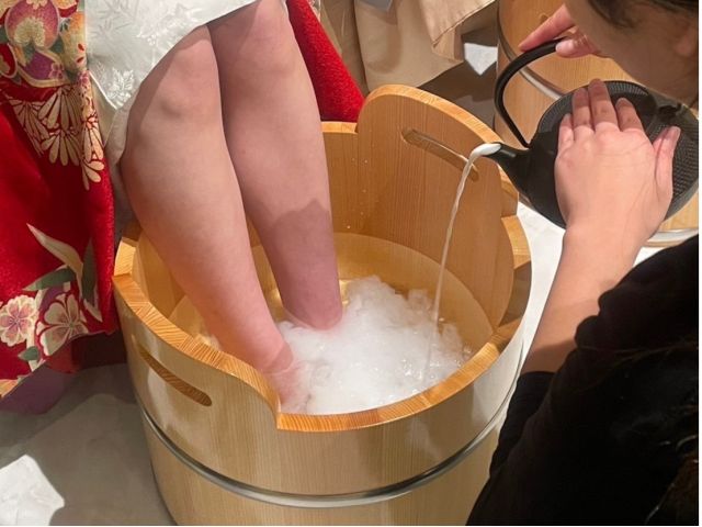 ◆セラピストによる、桶の中で行う足の揉みほぐしをご体験いただけます。