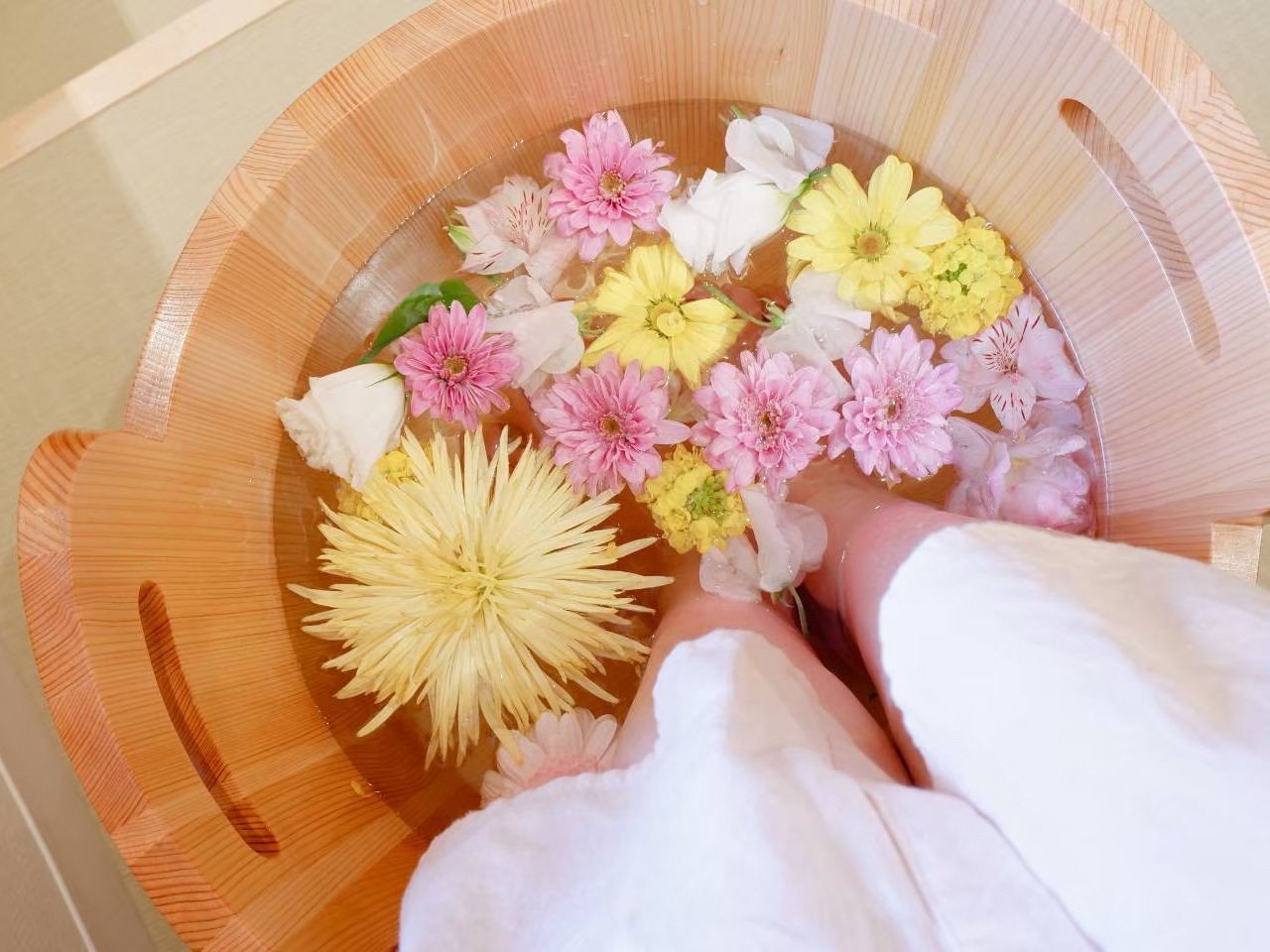 五感を刺激するフォトジェニックなお花の足湯をお楽しみいただけます。