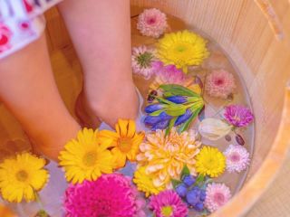【お花の足湯+フットマッサージ30分コース】 テレビで話題!フォトジェニックな季節のお花を浮かべた足湯< 雅 -Miyabi - >女性におすすめ! | 京都・祇園四条