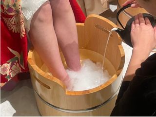 新感覚!【抹茶の足湯&フットマッサージ50分コース】 京都らしい和を感じられる香り高い”しゅわしゅわ”泡立つ足湯 < 和 - Nagomi - >| 京都・祇園四条