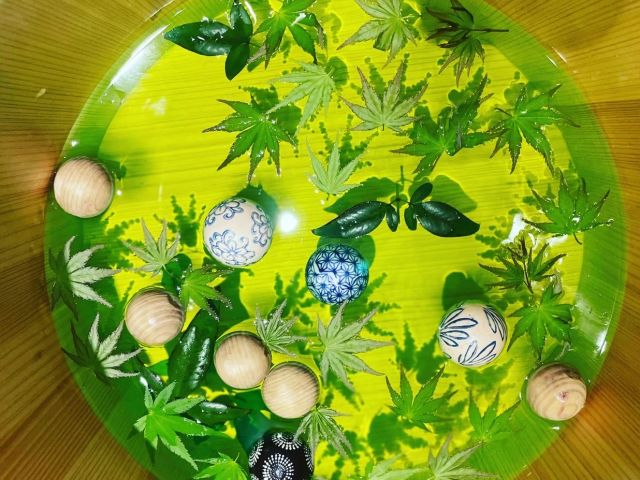 本物の抹茶の粉末が配合された、まさに京都!な風情ある足湯。