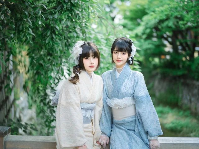 レース着物・レトロ着物・モダンな着物、正絹の着物レンタル特別割引プラン 清水寺まで徒歩9分 手ぶらでOK&女性ヘアセット付きのお得なプランもご用意♪【女性・カップルにオススメ♪】