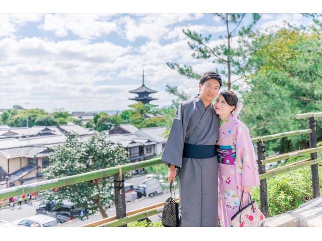 カップルプラン 着物・浴衣レンタル(帯飾り無料特典付) 清水寺まで徒歩9分 手ぶらでOK&女性ヘアセット付きのお得なプランもご用意♪【女性・カップルにオススメ♪】