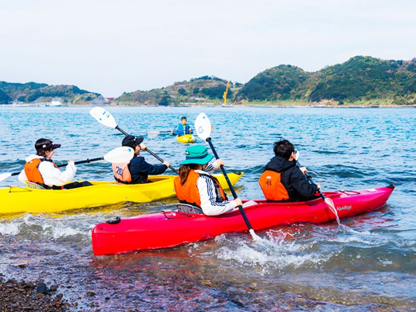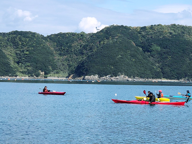インストラクターのレッスンを受けた後、宇和海に漕ぎ出します。