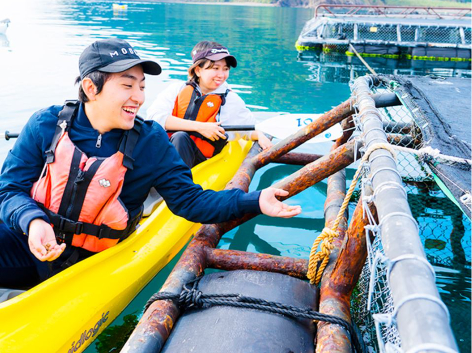 宇和海の大自然に加えて、養殖筏での餌やり体験や真珠・岩牡蠣の養殖場の見学もします。