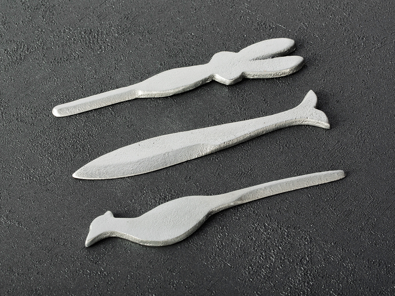 アルミ鋳物の動物の菓子切りに模様・名入れ刻印するカジュアルコースです。