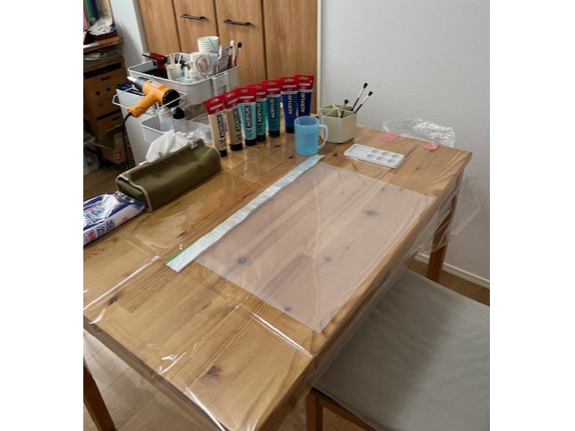 A4サイズ(210×297)の木製のアートパネルにエポキシ樹脂のレジンで海を描くアート作品作りとなります。
