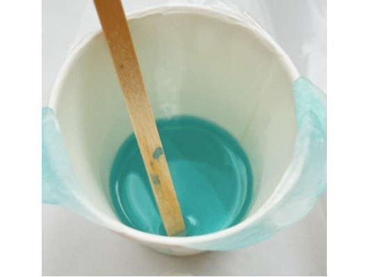 透明な主剤と硬化剤の二つの液体を混ぜ、化学反応で固めていく樹脂です。