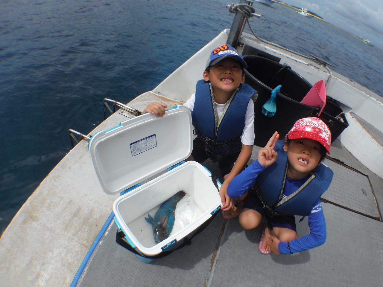 沖縄らしいエメラルドグリーンのお魚が釣れて大満足♪