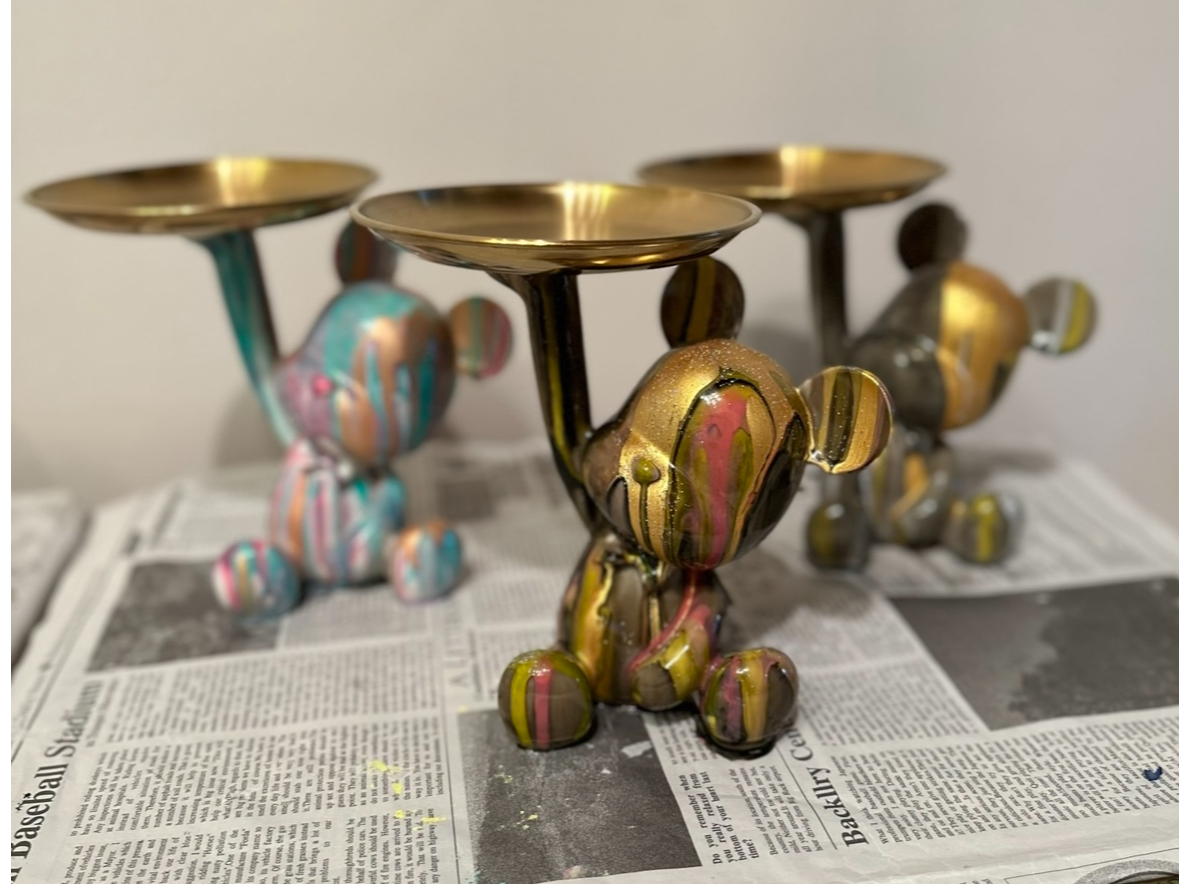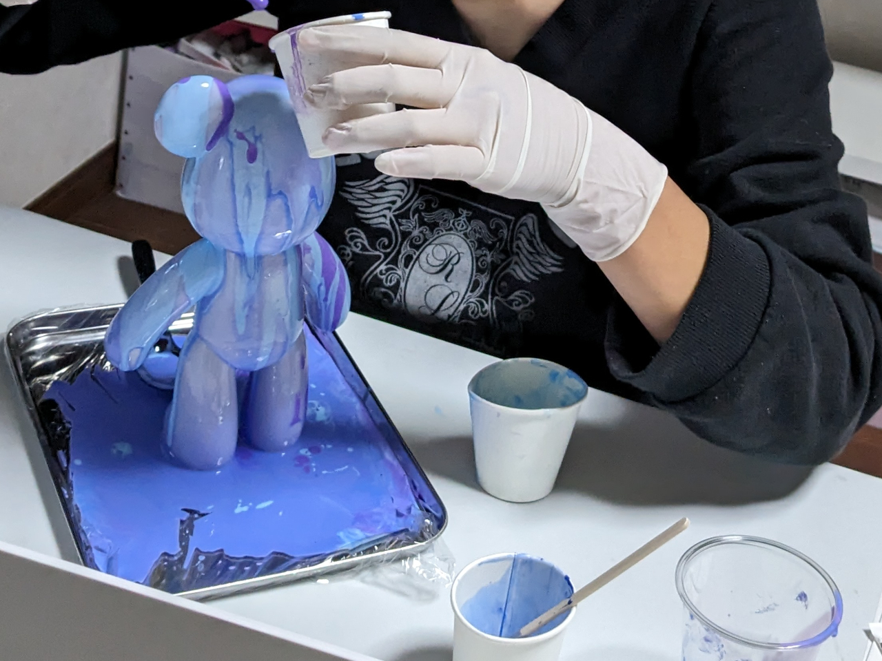 ベアーアートとは液状にしたアクリル絵の具をフィギュアの上から流しマーブル模様などの様々な色彩表現を生み出しながらオリジナルフィギア作りを体験