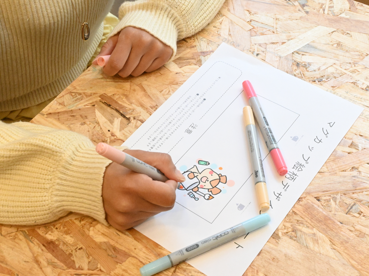 文字でアートな雑貨屋さん「モジマトペ」で缶バッチ・マグカップ・ハンドタオルを製作します♪
