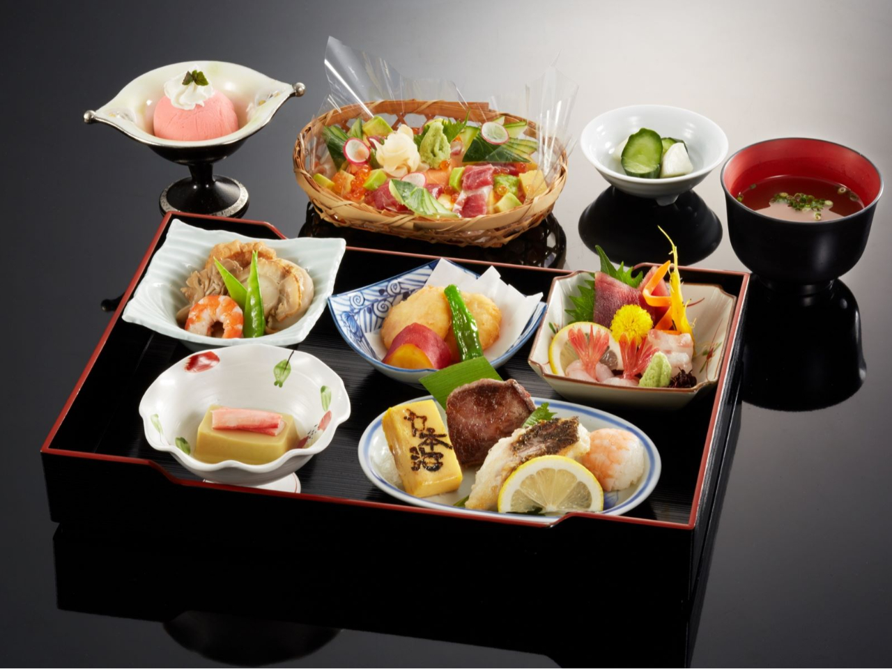 日本海自慢の海鮮料理を中心に松花堂弁当に綺麗に盛り付けてご提供いたします。