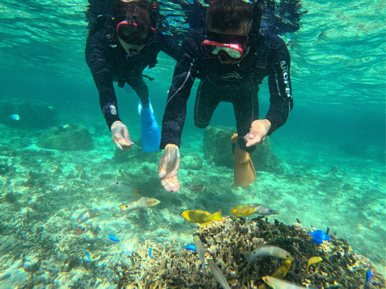 ツアー中の写真撮影&動画撮影、カラフルな熱帯魚の餌付けが全て無料☆