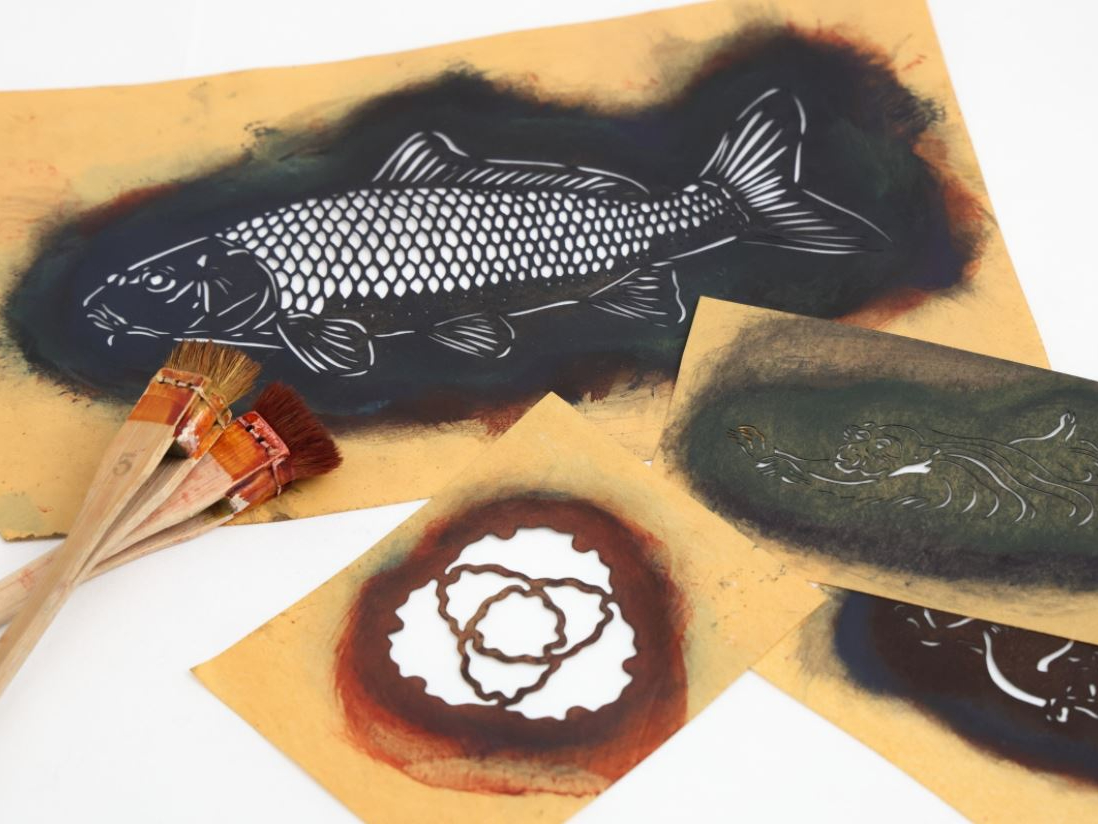 動物や植物、鳥獣戯画、文字(アルファベット、ひら、カタ)など400種類以上の型紙からお好きなものをお選びいただけます。