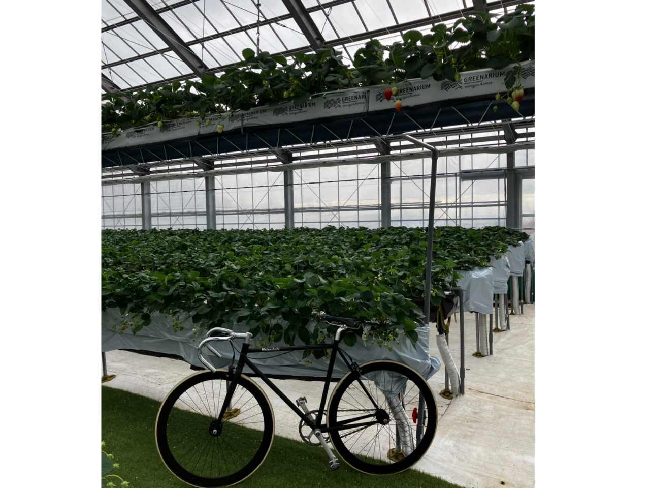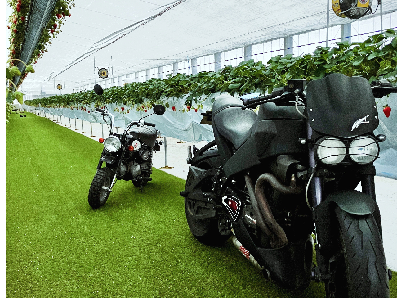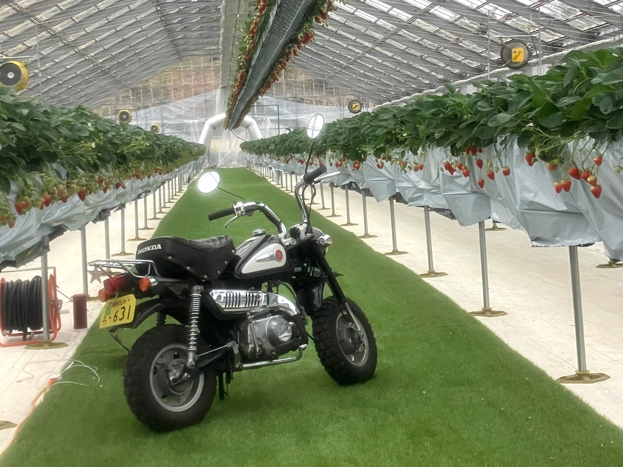 【淡路島 いちご狩り】<おいしい「紅ほっぺ」が50分間食べ放題♪>珍しい空中栽培ゾーンで、ご自身のバイクや自転車と一緒に撮影できます☆練乳の持ち込み可◎カップル・お友達同士にオススメ♪