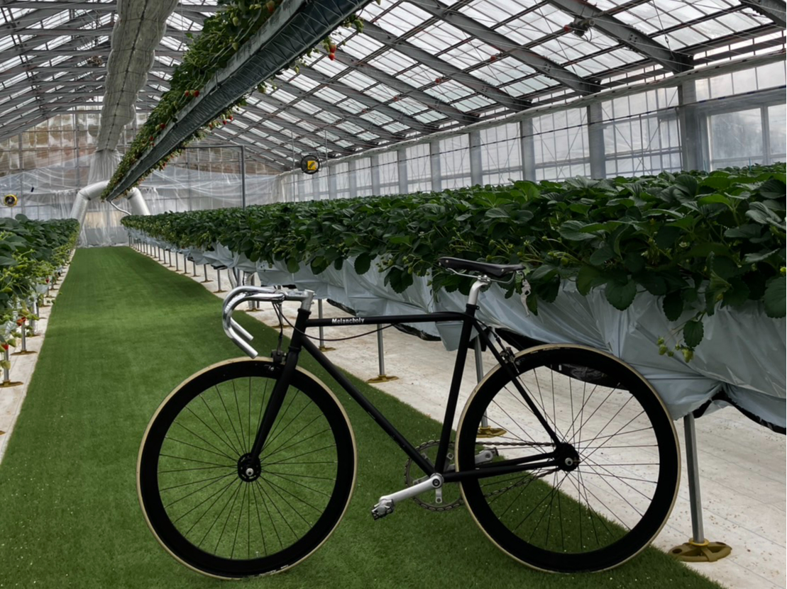 【淡路島 いちご狩り】<おいしい「紅ほっぺ」が50分間食べ放題♪>珍しい空中栽培ゾーンで、ご自身のバイクや自転車と一緒に撮影できます☆練乳の持ち込み可◎カップル・お友達同士にオススメ♪