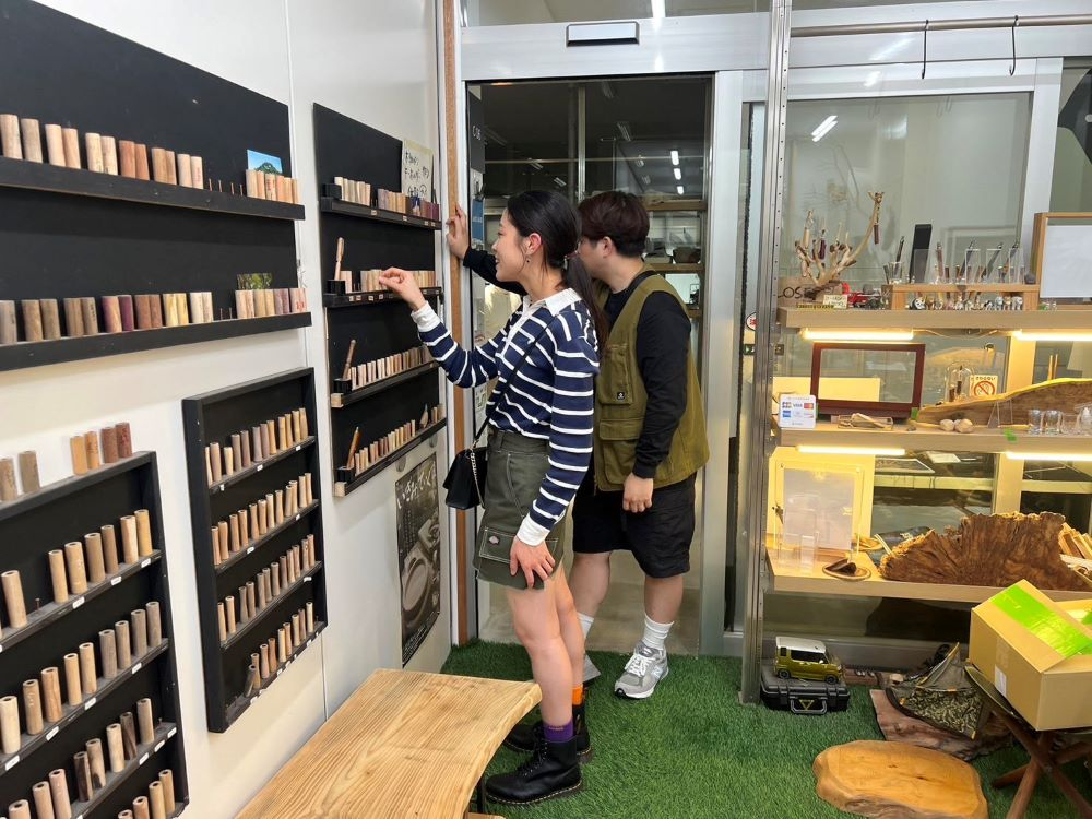50種類以上の木からお好みの木を選び、自分好みの形に削って磨き上げ、オイルを塗ったらオリジナルボールペンの出来上がり!