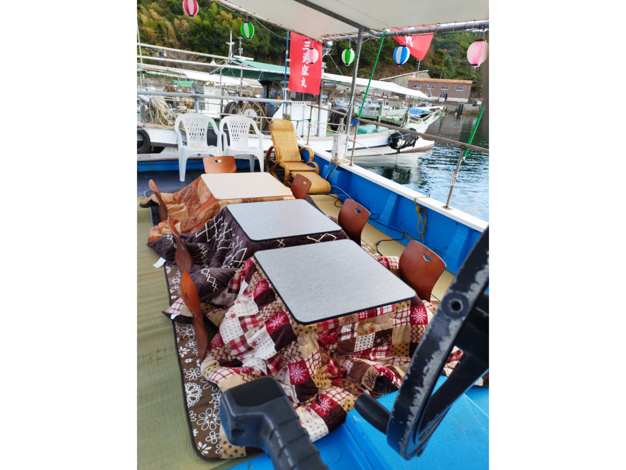 冬場はこたつ船になります!船の上でこたつとみかんでお寛ぎください♪