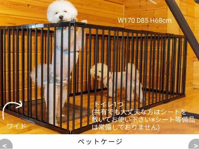 ■建物内では原則ケージの中のみ。必ずご持参頂いたシートを敷いてご利用下さい。ケージ以外の備品等は一切ございません。ケージが追加で必要な場合もご用意下さいませ