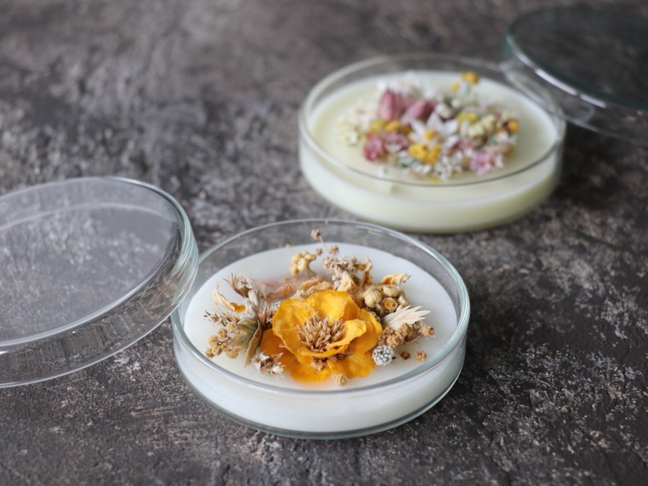 シャーレの中に小さな花畑をお作りいただけます。