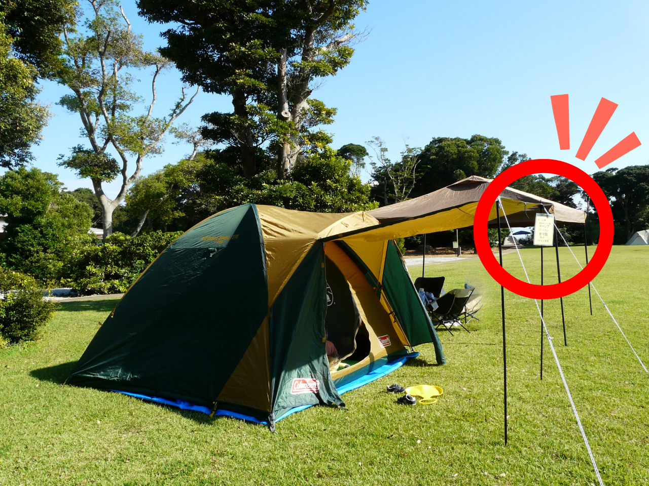 許可証はテントやタープの外から見えるところに付けてください。