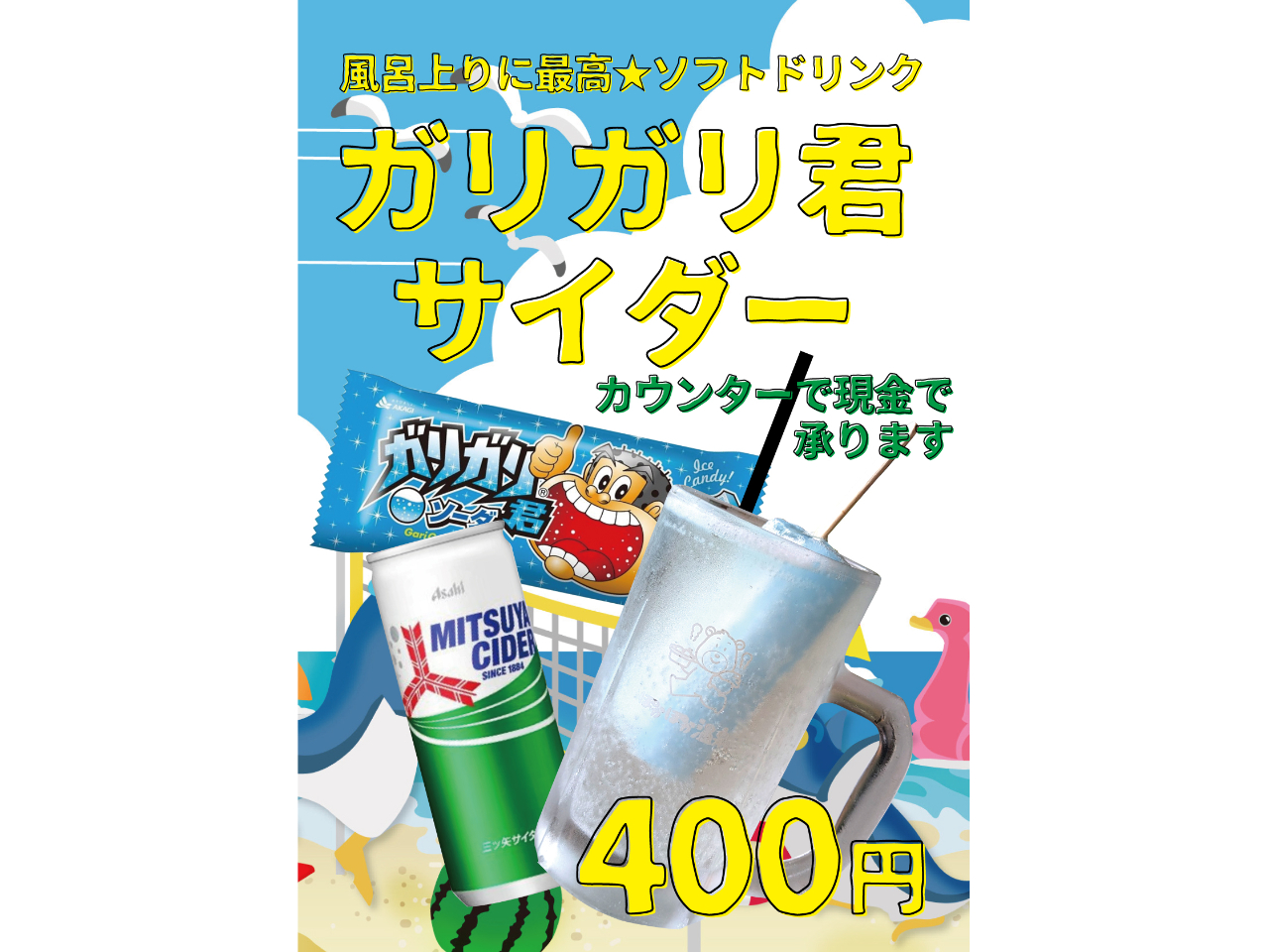 ガリガリ君×三ツ矢サイダーのコラボ★想像の100倍美味しいので是非ご賞味下さい♪日帰り温泉