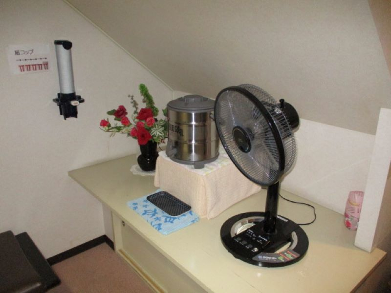 休憩室ではブラックシリカ水をお飲み頂けます。タンクにブラックシリカ石が入ってます