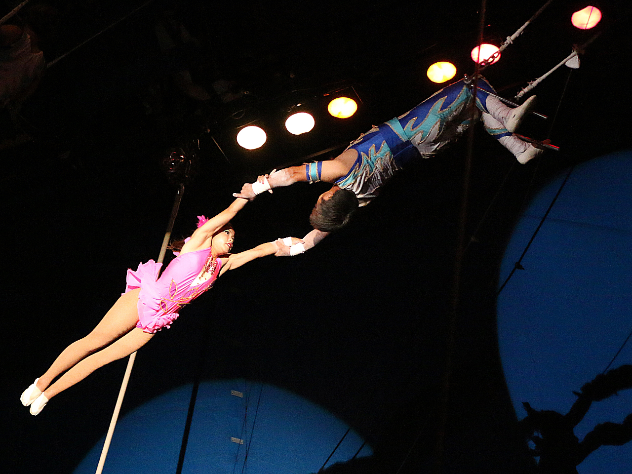 アーティストスペシャル「夢のダブル空中ブランコショー」、スリル溢れる「3台乗りオートバイショー」