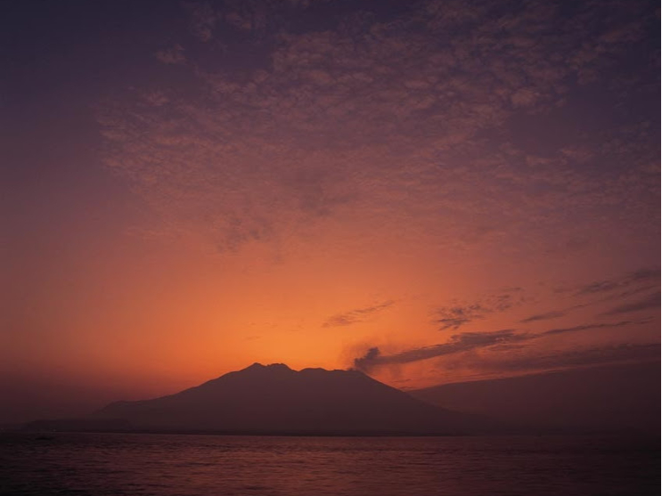 鹿児島の錦江湾と、火山島桜島の美しい日の出を眺めながら、
