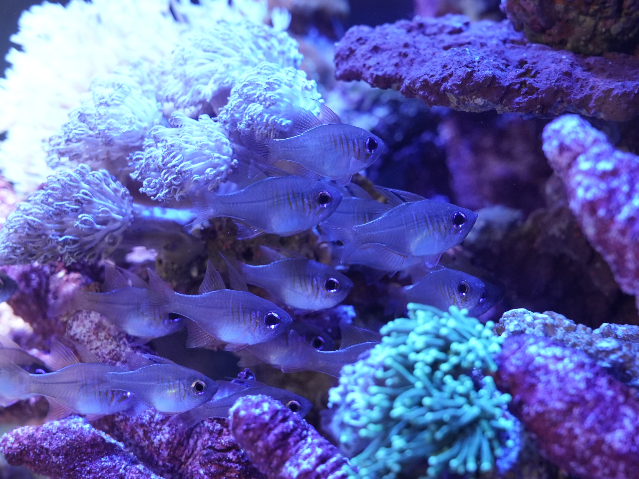 魚たちの優雅に泳ぐ姿を様々な色彩の照明で彩る、非現実的な空間でした。
