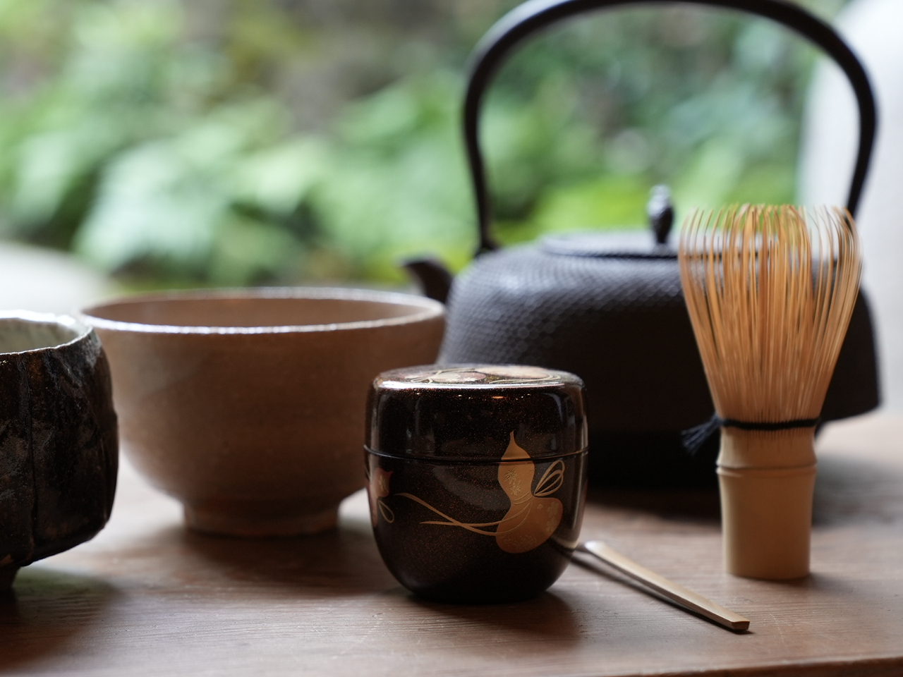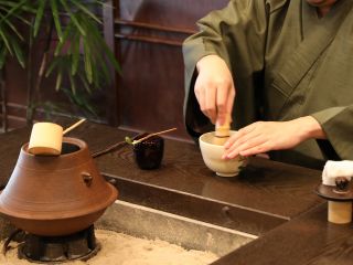 裏千家の師範代がたてた抹茶を囲炉裏を囲んでご賞味いただいたり、お客様ご自身で抹茶をたててみたり、京都の茶道をお気軽にお楽しみいただく「プチ抹茶体験」です。