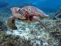 しばらくウミガメが見つからなかったですが、その分珊瑚礁も楽しめて満足でした。インストラクターの方がウミガメをたくさん探してくださって、無事一緒に泳いだり写真を撮ることができました。(1匹目は警戒心の強い子でしたが、2匹目で人慣れしている子に出会えました。)写真のアングルも素晴らしすぎて後から見返しても大感動です。