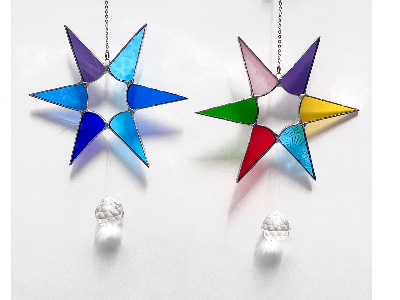 【北海道・帯広市】初めての方でも安心♪気軽に作れるステンドグラス★ @小鳥 A星のサンキャッチャー B青い魚のオーナメント
