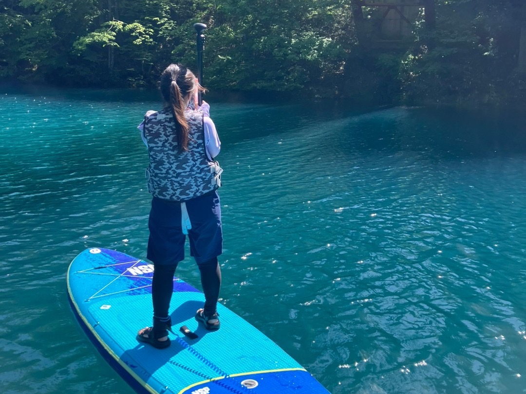今年は10月からダムの放流があるそうで、supができるのは9月いっぱいとのこと。駆け込みでしたが、大変楽しめました。天候条件も良く、四万ブルーがとても綺麗で木々とのコントラストが美しく、素敵な時間でした。インストラクターの方が大変気さくで話しやすく、丁寧に指導してくださりました。また、集合場所からすぐに四万湖に入湖できるのも時間のロスがなく魅力です。supボードやオールもお値段高めの質の良いものを使用しているそうで、そのお陰か大変ボードに安定感があり、9月で水は冷たかったのですが、落ちずに済みました。また是非リピートしたい体験でした。