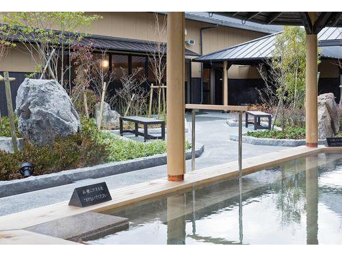 自然を満喫できる露天風呂には、源泉外湯、高濃度炭酸泉・壺湯・寝湯・サウナ・水風呂、