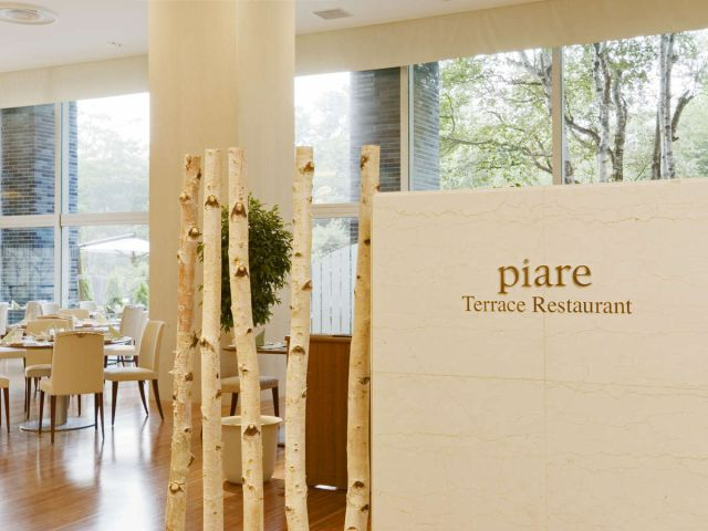 中庭に面した開放感のある大きな窓が特徴のテラスレストラン ピアレ。