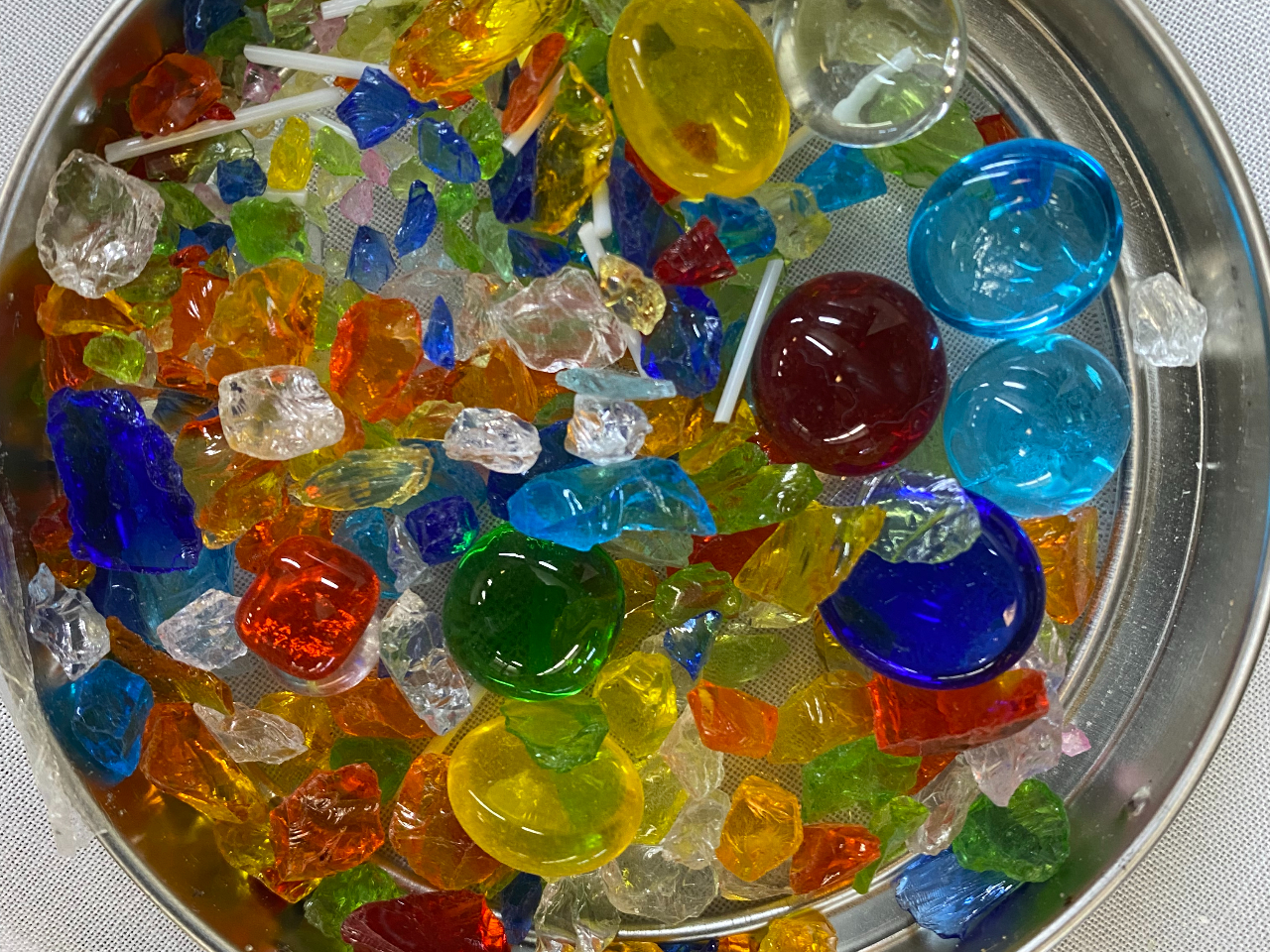 ステンドグラスに使用されるガラスですので、いろいろな色がありきれいです。
