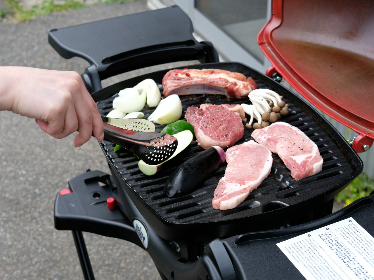 ※BBQの本場アメリカのweber製ガスグリル、テント、調理器具一式、テーブル、椅子、クーラーボックス、食器類(使い捨て)、調味料セット、ゴミ袋1枚は料金に含まれます。
