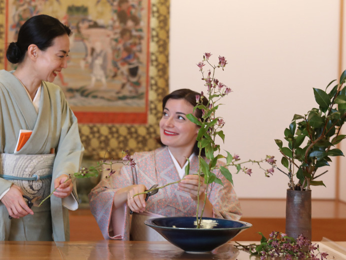 着物を着る、お茶を嗜む、お花をいける、和菓子を習うーそれは日本を訪れる観光客の方はもちろん、当世では私たち日本人にとっても憧れの貴重な体験になります。私たちはその一期一会のひとときにふさわしい空間と最高のおもてなしで、お客様をお迎えします。