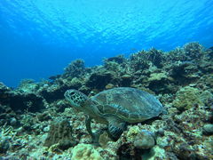 ウミガメ探索シュノーケリングに夫婦と8歳の娘とで参加しました!本島の海でどうしてもウミガメに会いたくて、色々やショップに問い合わせましたが、このショップさんにほぼ毎回会えてますと聞いて、ここしかない!と即決でした(°▽°)最初緊張していましたが、当日オーナーさんの優しく気さくな雰囲気に安心しました。丁寧に説明してくださって、しかも出身が私達の地元の近くだということを聞いて更に親近感でした!現地の海に移動すると、またガイドさんも親切でユーモアのある方でした!!娘も最初怖がっていましたがガイドさんが優しく引率してくださったので、意欲的にシュノーケリングを楽しんでました♪♪そして念願のウミガメに遭遇!!しかも3匹も、、!!本当に感動でした!水中スクーターもレンタルさせていただき、とっても快適でした!本当に楽しかった!!このお店に決めて大満足でした。また沖縄に来たらお世話になりたいです!!貴重な体験と思い出をありがとうございました♪♪