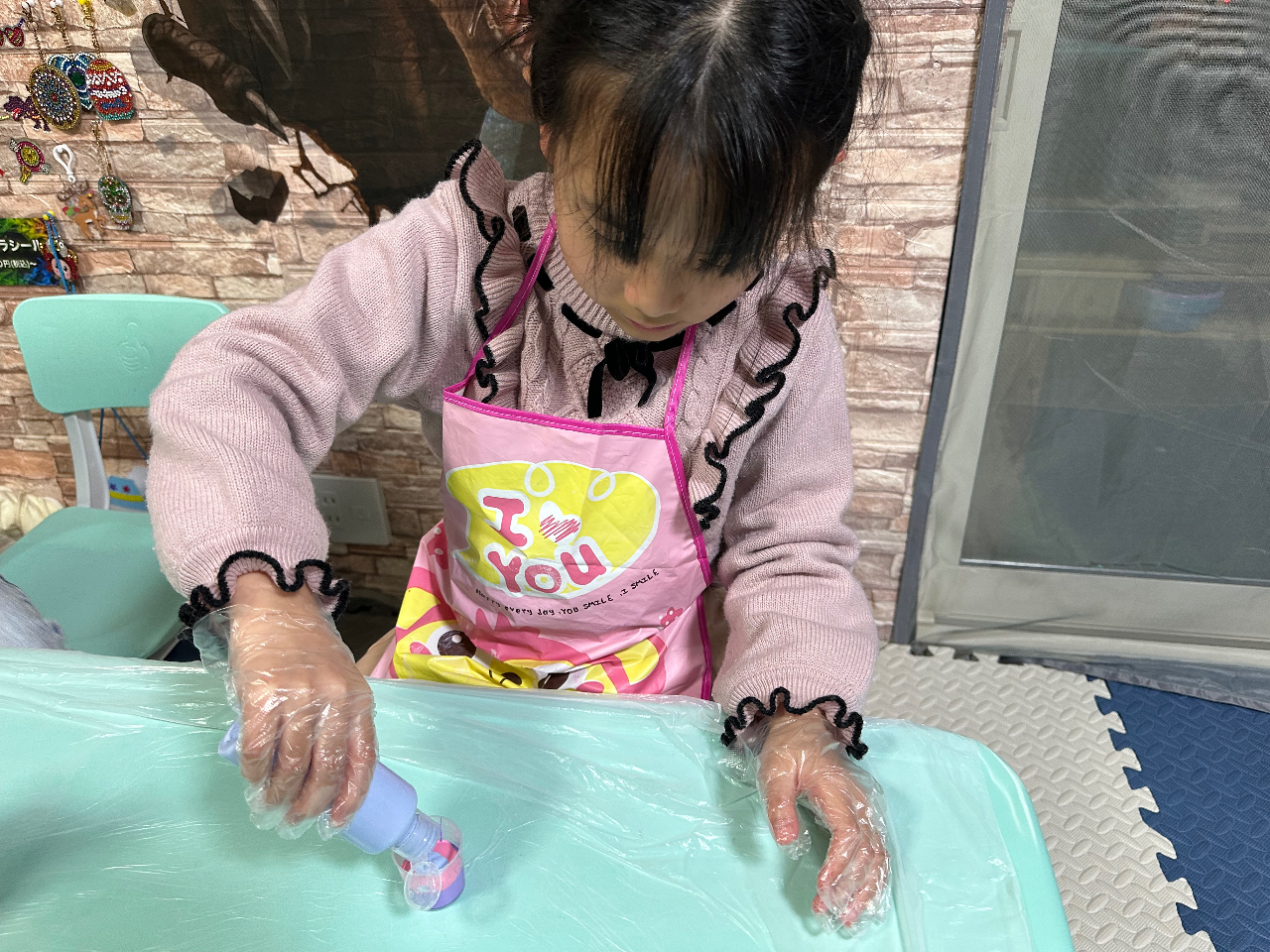 T.汚れ防止のためのエプロン・手袋などを身につけていただきます。
