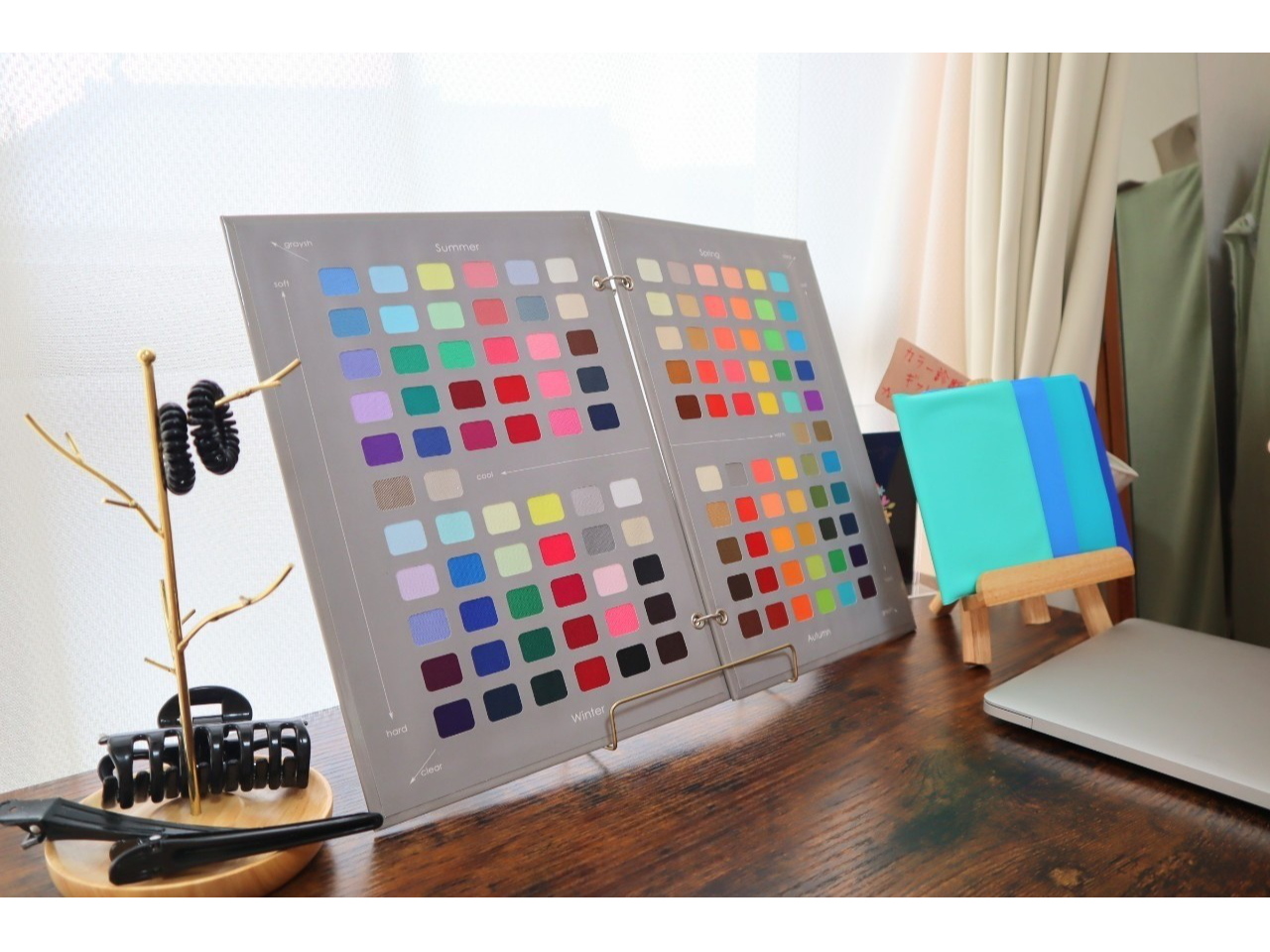 本来の色が正しく見えるカラー診断専用の照明のもと、120色以上の布を使用した、パーソナルカラー診断を受けることが出来ます*゜。