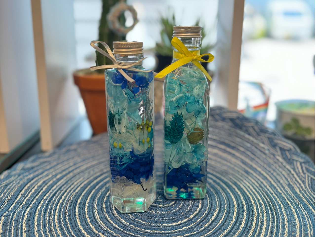 好きな花、海の砂、貝殻に専用オイルを入れたボトル作り★彡