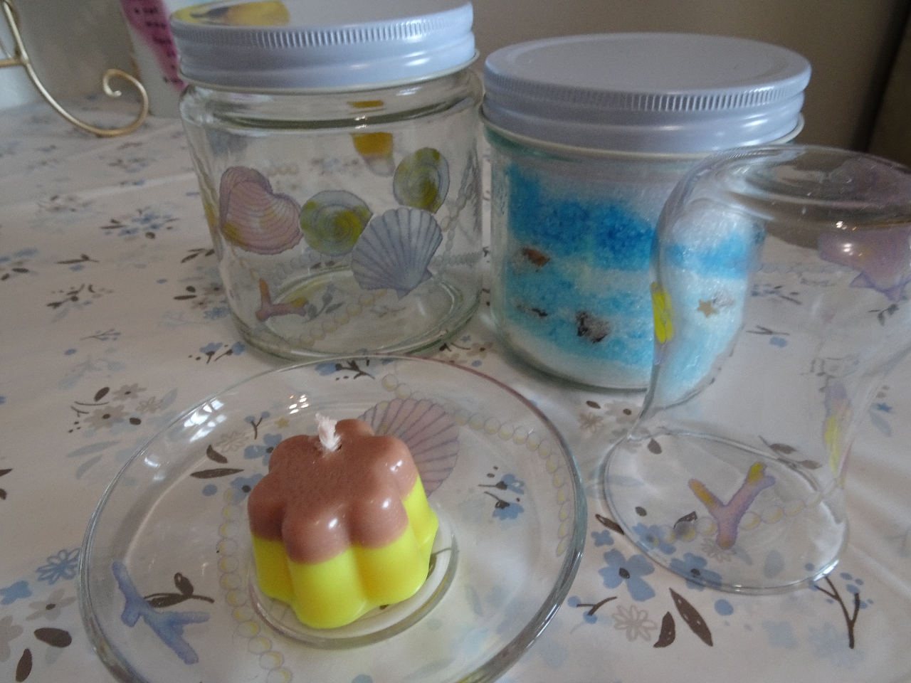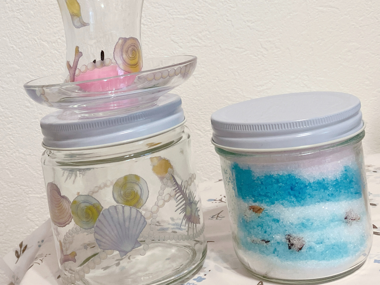 アロマ専門店で働いていたこともあり、アロマを使ったアロマキャンドルとバスソルトを作ります。