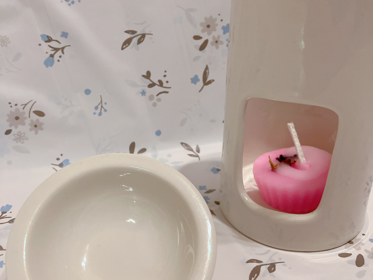 キャンドルは便利なカップとソーサーがついてきます。別途ポーセラーツ体験で絵付けできます!ソーサーごと湯船に浮かべて、使用後はカップをかぶせて消火!そのまま浴室で保管できます!