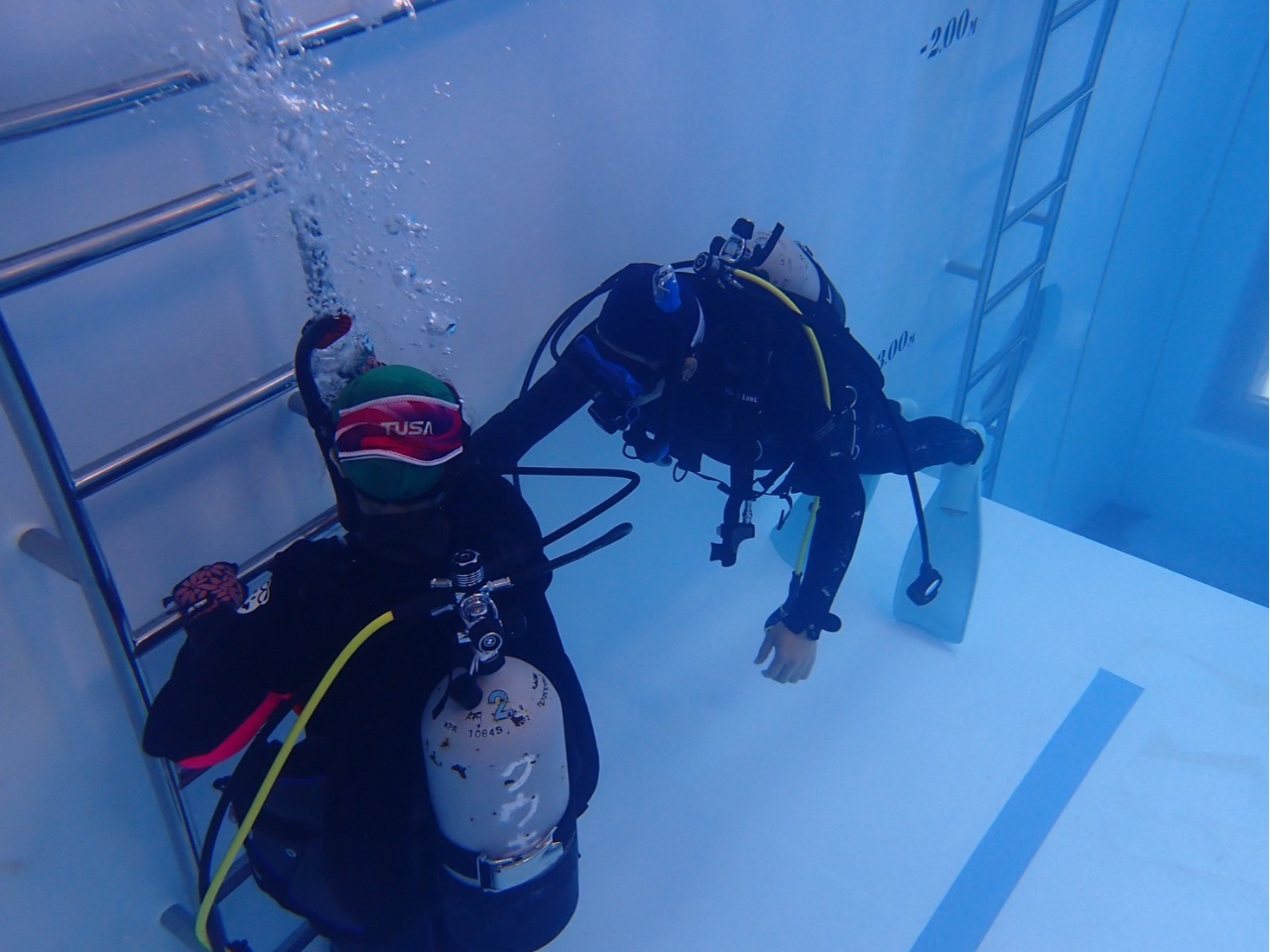 温水プールなので年中快適にダイビングができ、気軽にダイビングを味わうことができます。 一度ダイビングを経験すれば、実際に海で潜りたくなるの間違いなしです!