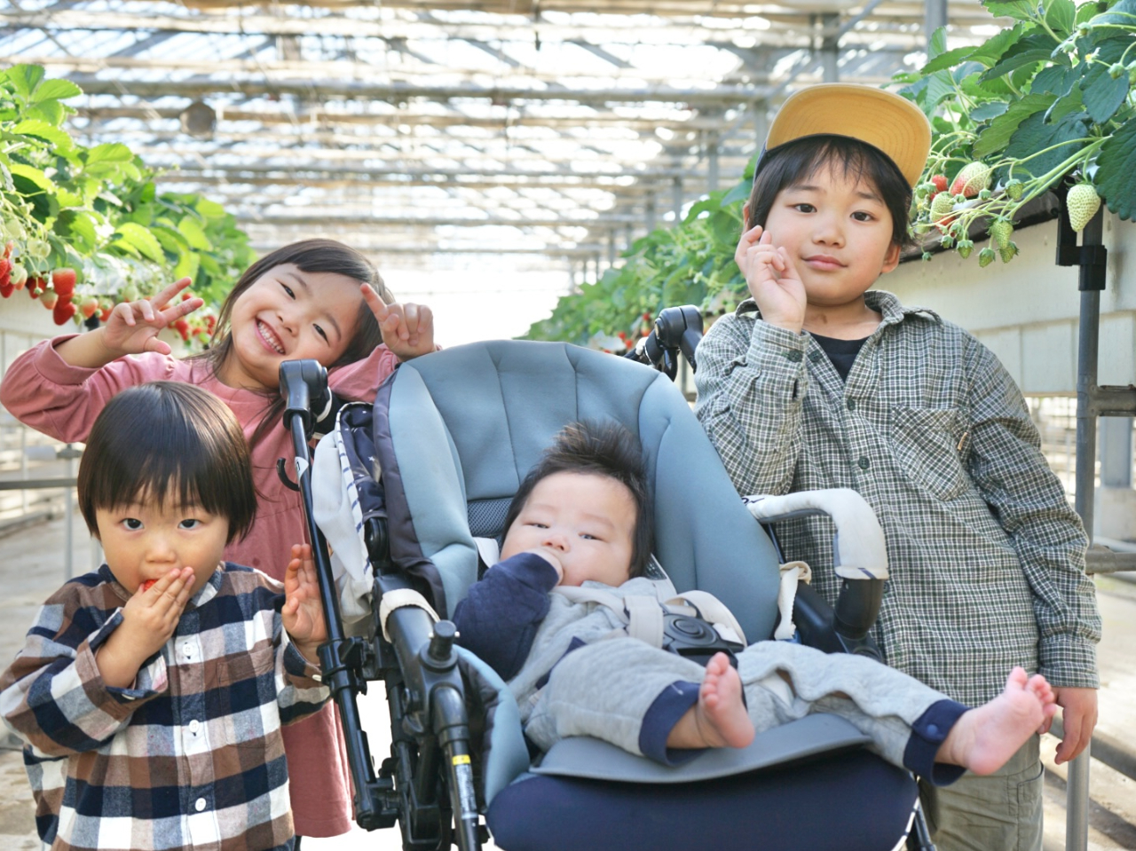 当園のいちご温室は、通路が広いためベビーカーや車いすでも入場していただけます!