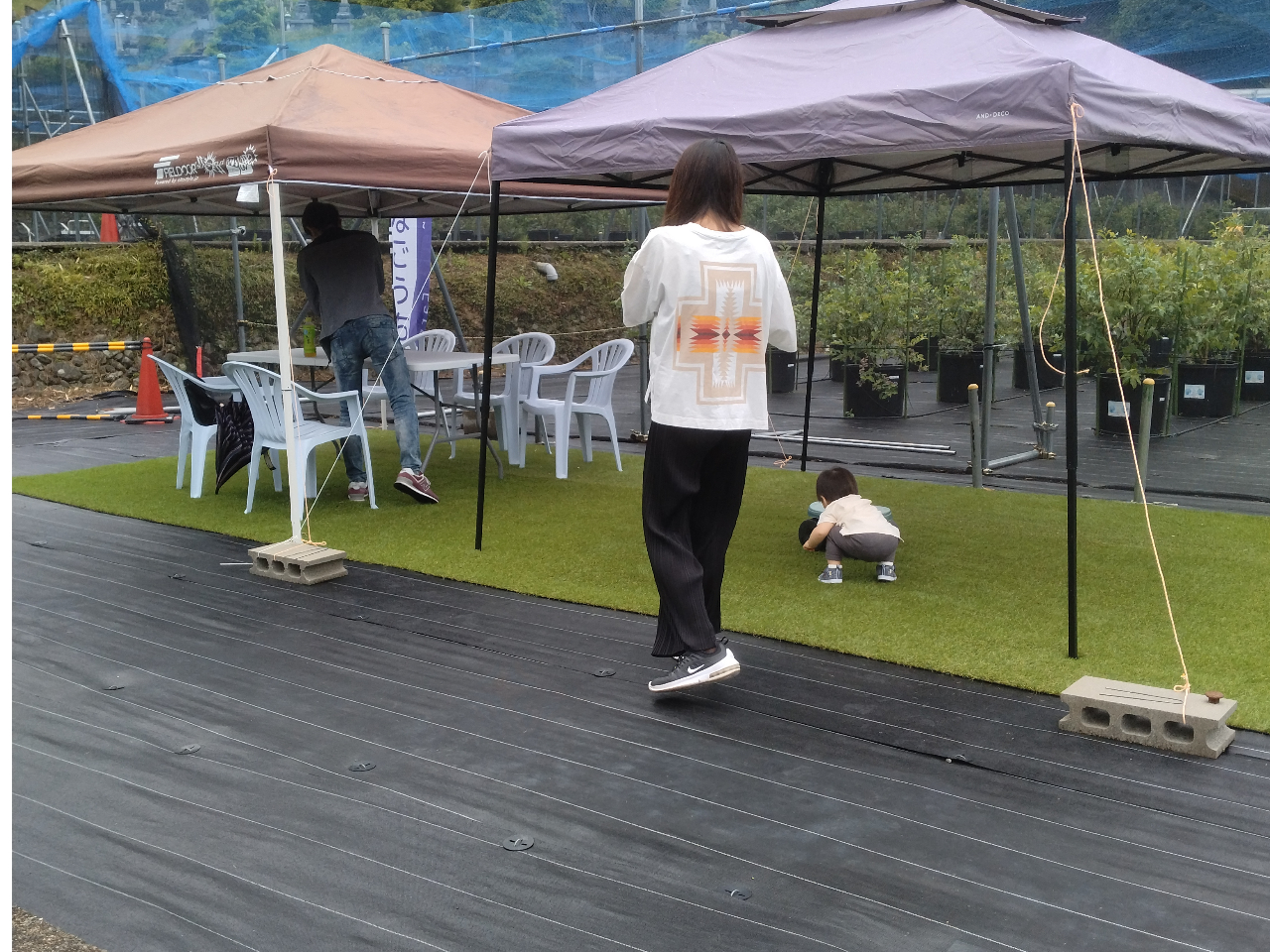 園内は防草シートを敷いていますので、歩きやすくベビーカーや車椅子でも大丈夫です。